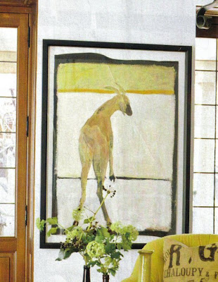 I came across the work of Helen Durant in the October issue of Traditional Home. Working with mixed media, Helen makes goats tres chic. Me like!