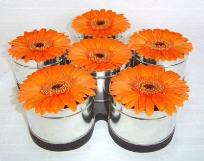 How about making a fresh contemporary centerpiece with some Gerbera Diasies. Very easy and eco friendly. Enjoy! (image via egos)